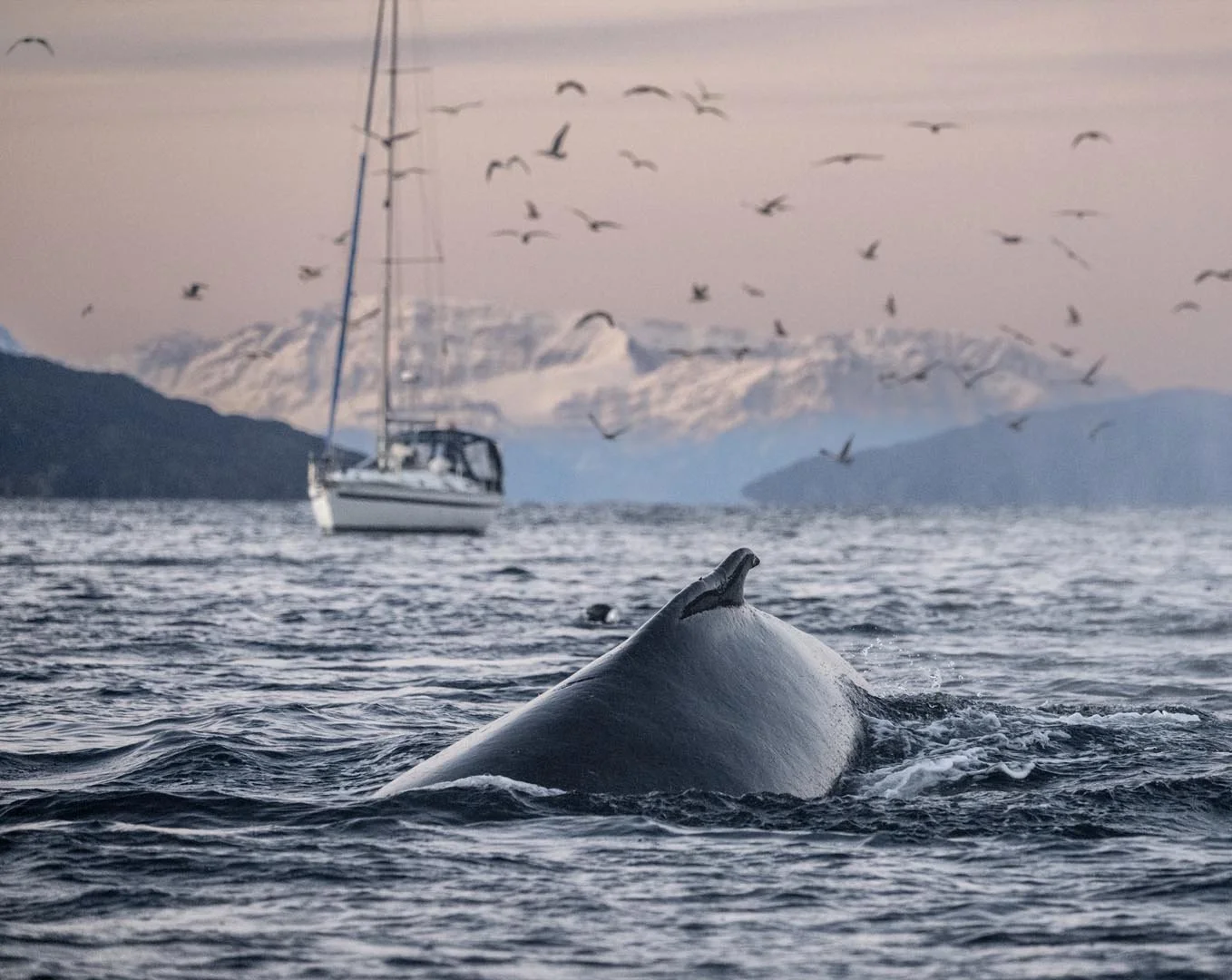 The sail vessel also lets us move. We find animals, we go to them and fewer crowds. Join us to see orcas, humpback whales feeding on giant baitballs, and of course, the famed and spectacular northern lights, in one of the most stunning landscapes on earth.