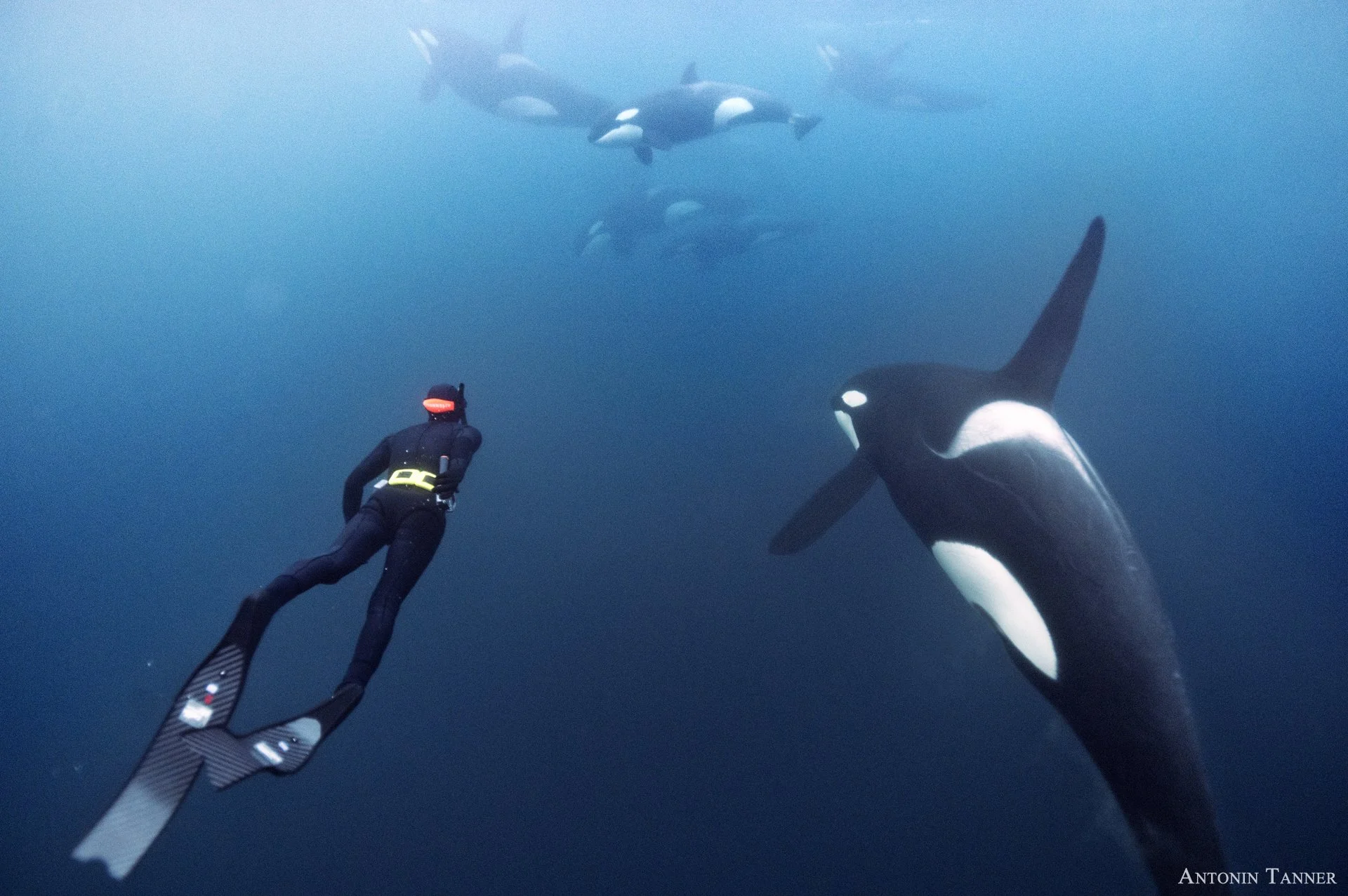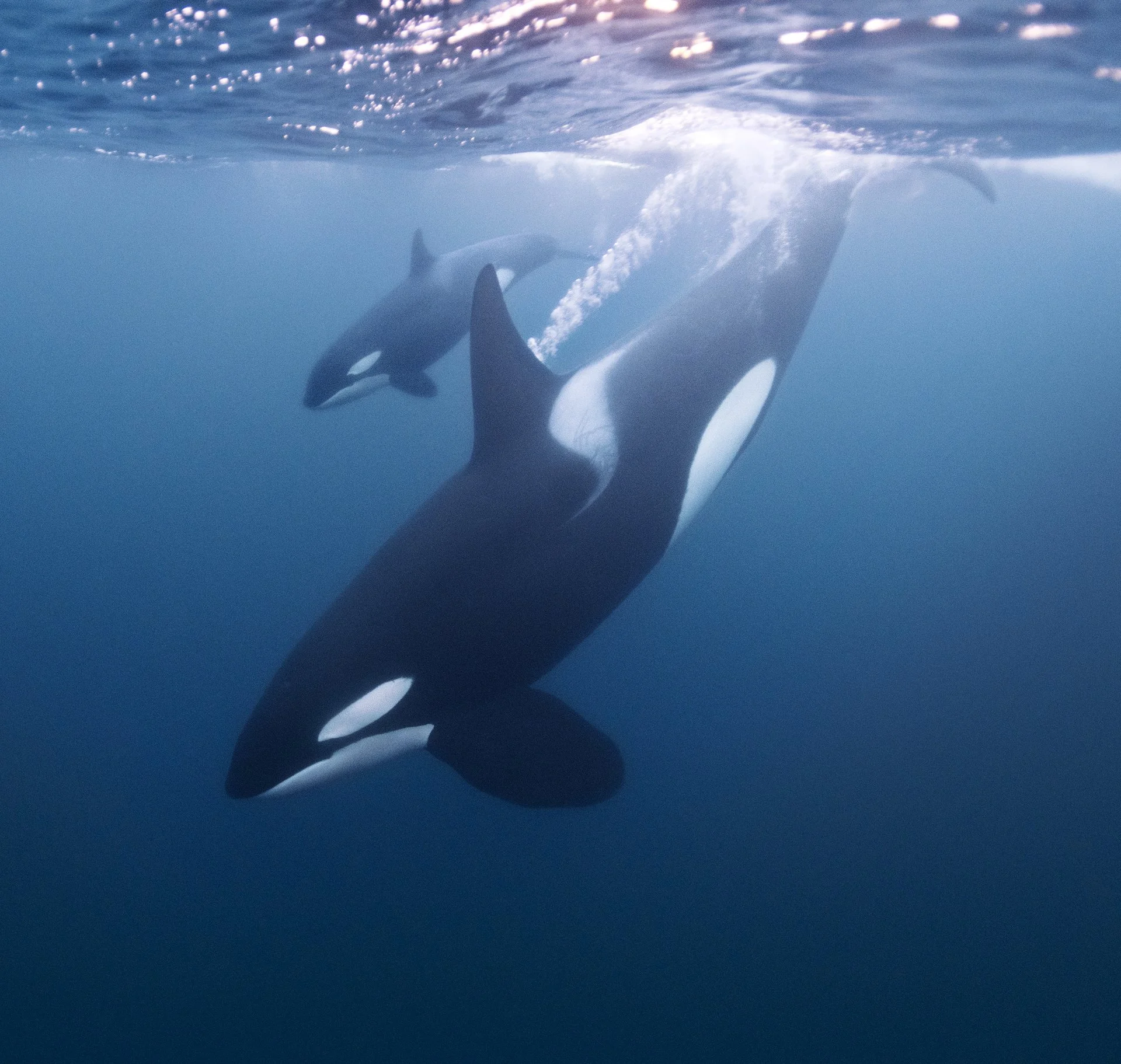 Join our remote Norway Fjords expedition to swim with Orcas, and humpbacks during the Herring run. Each year's aggregations of Herring move into the fjords of northern Norway. This brings in a feeding frenzy of humpback whales, fin whales, and one of the largest populations of Orcas on earth. Join us for 6 days of swimming with these amazing giants of the sea. No SCUBA certification needed.